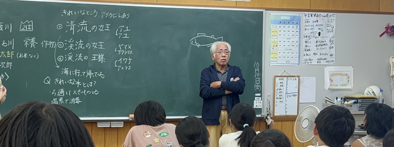 地域の先生から、羽茂川や鮎について学びました。