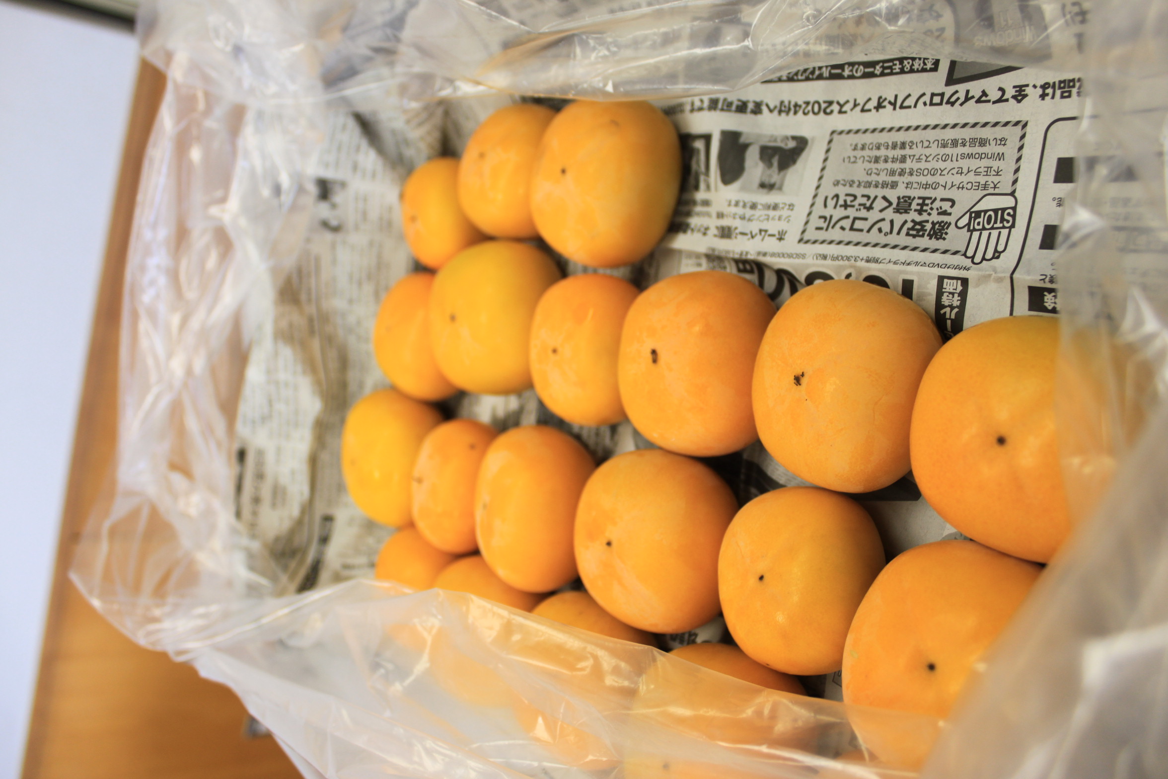 ビニールを密閉して数日待ちます。今後、この柿を両津・小木港で配り、佐渡・羽茂の柿を乗船客にアピールする予定です!