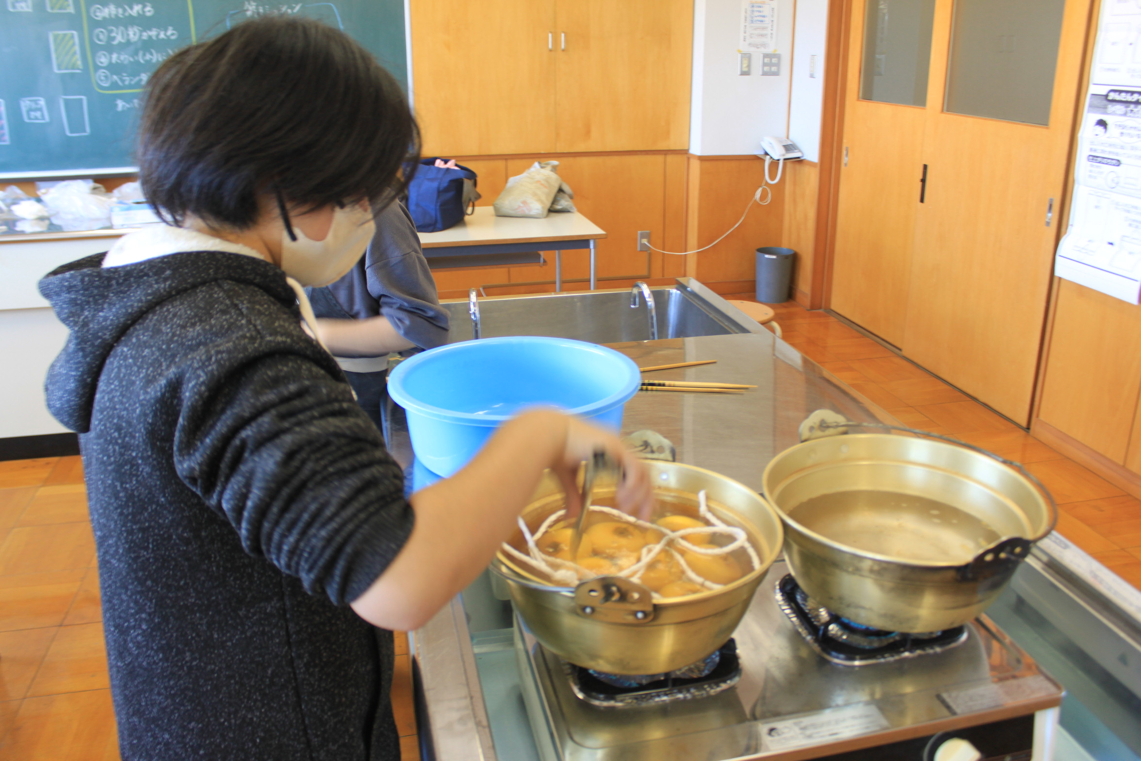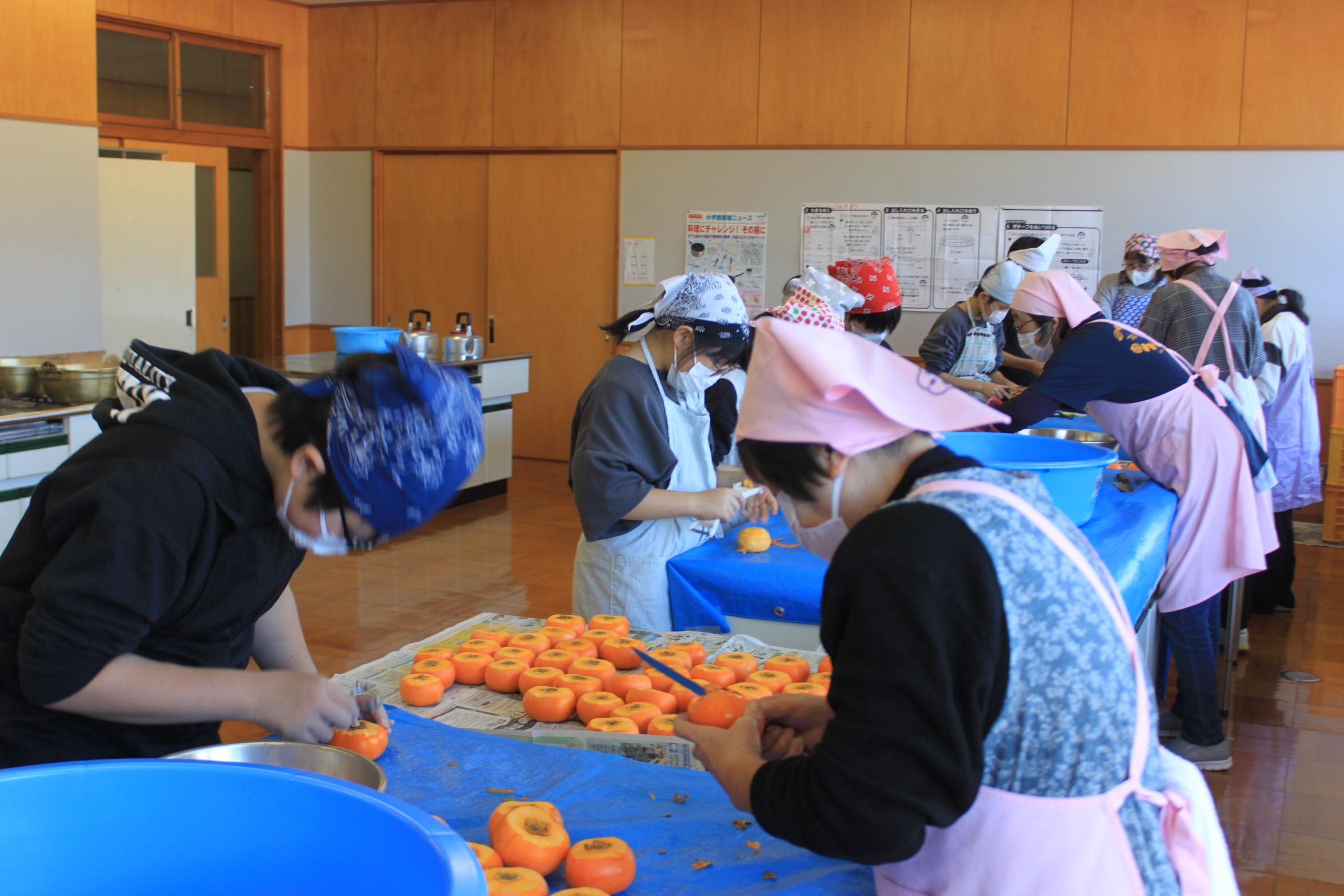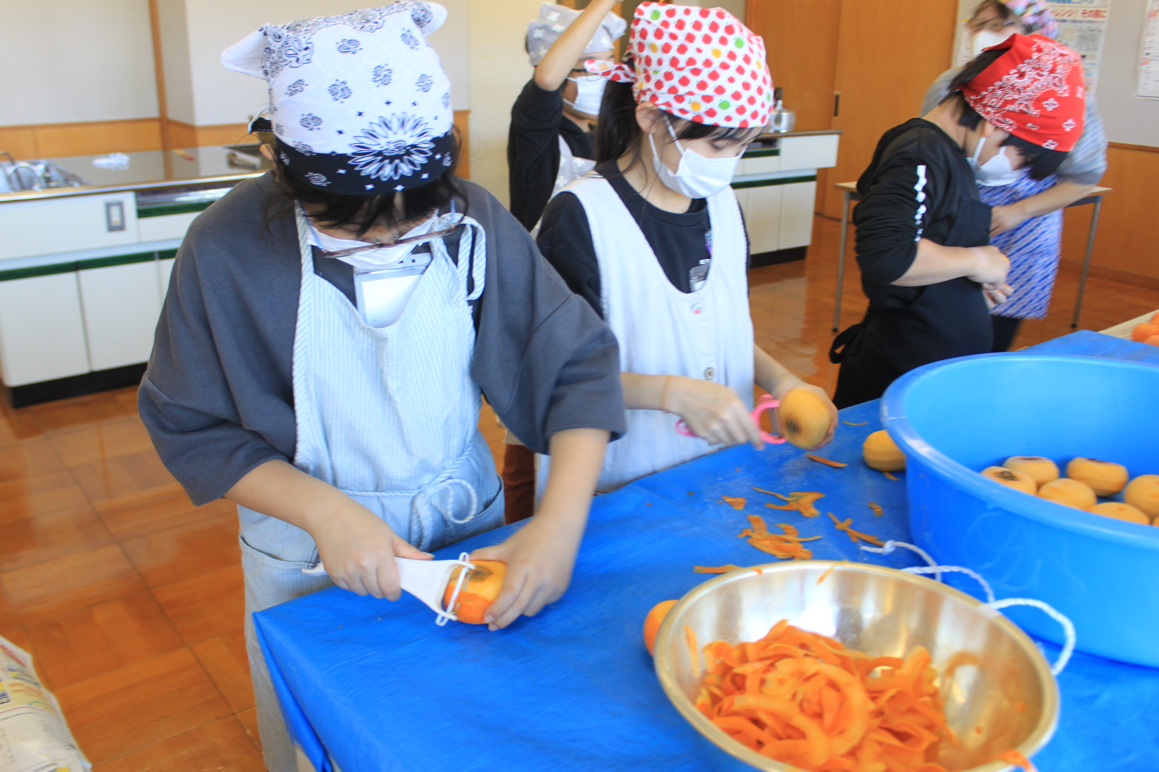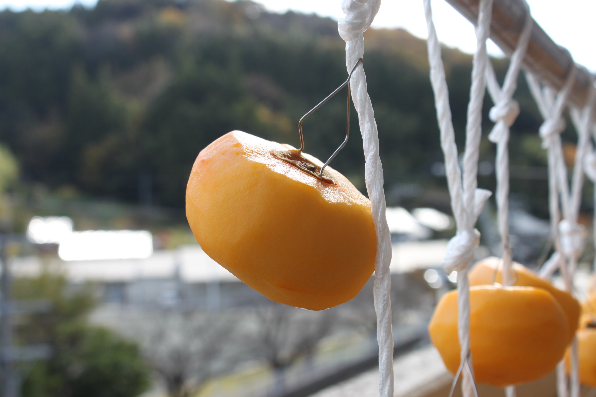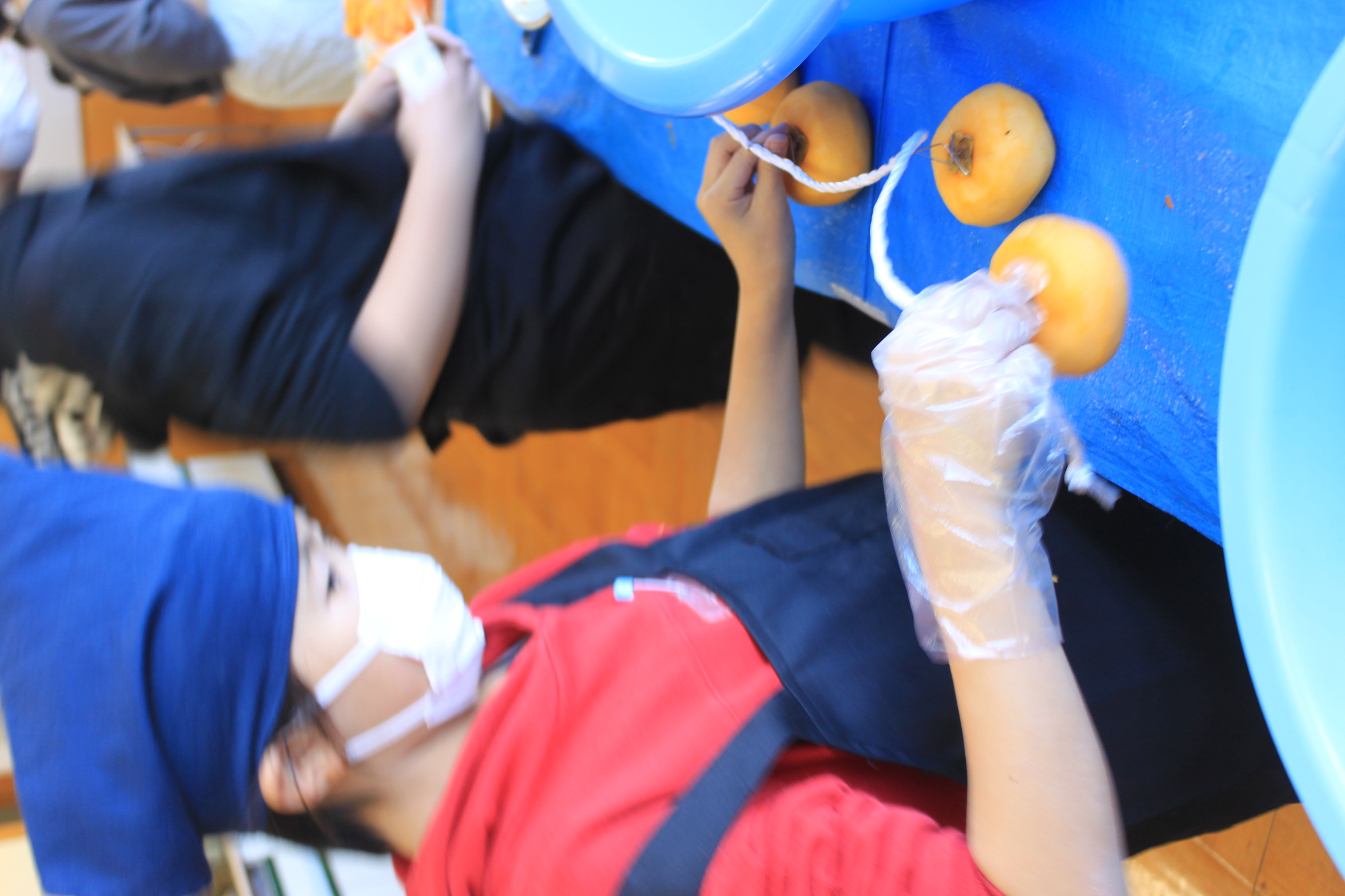 5年生は、地域ボランティアさんを募って、干し柿作りにチャレンジです。