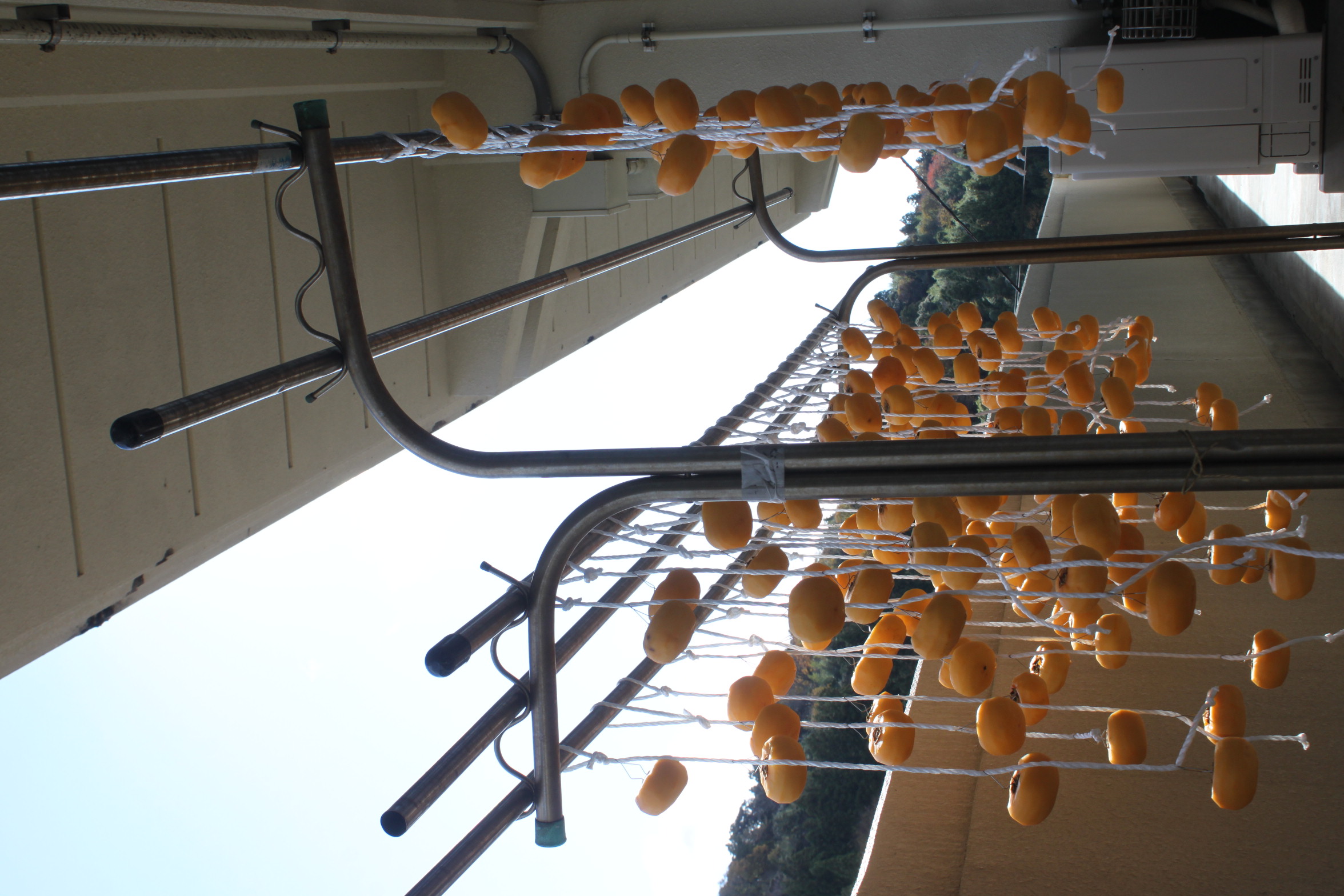 教室のベランダに干しました。食べられるのは、2月頃でしょうか。
