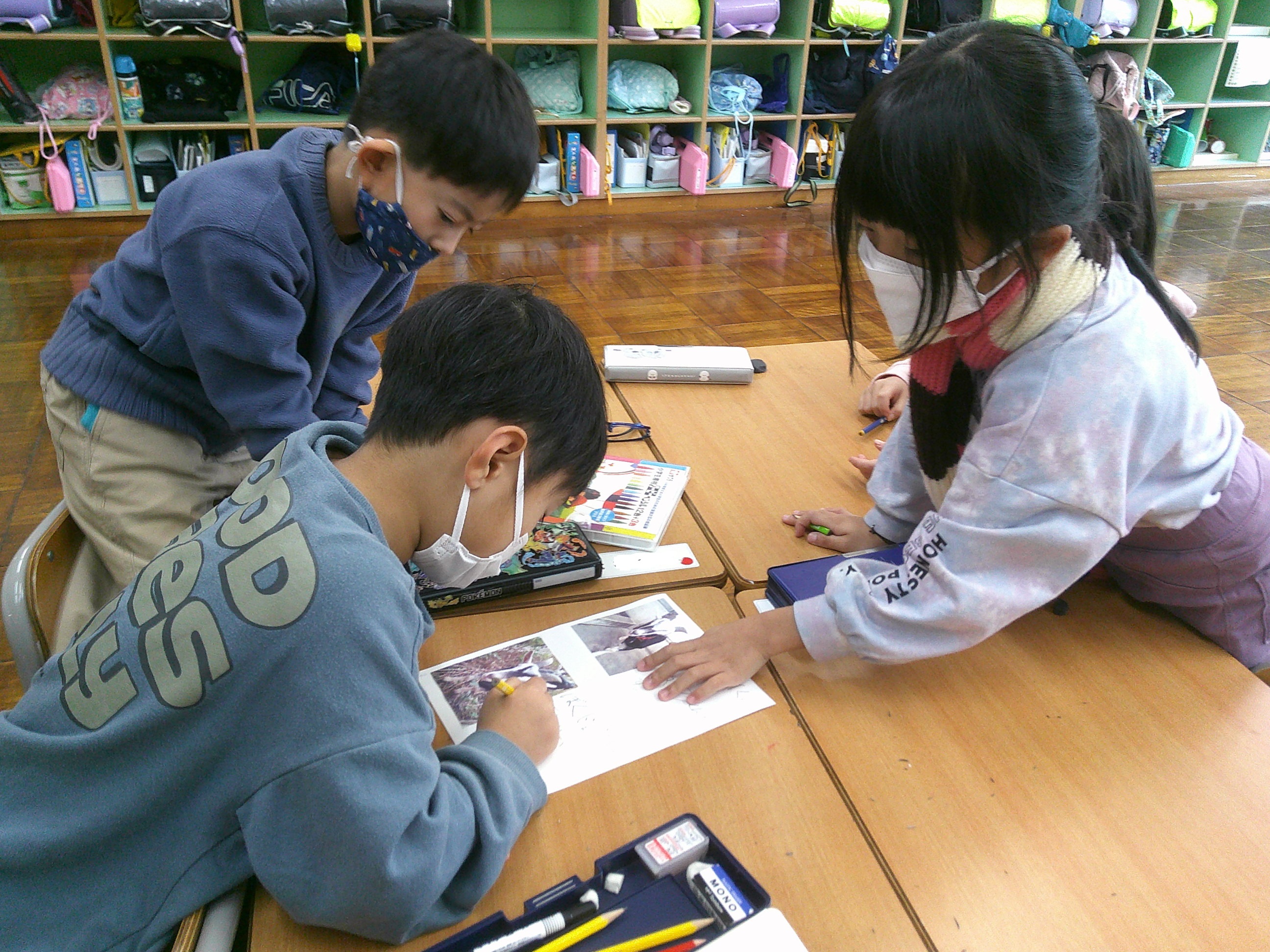 1・2年生は、これまでの活動写真を整理して、アルバムを作っています。
