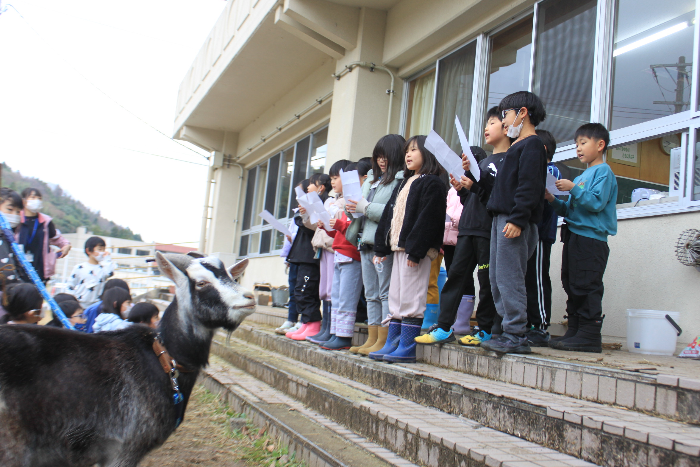 続けて、2年生が「ありがとうの花」を歌い、替え歌をしてダイくん・フクくんに感謝を伝えました。