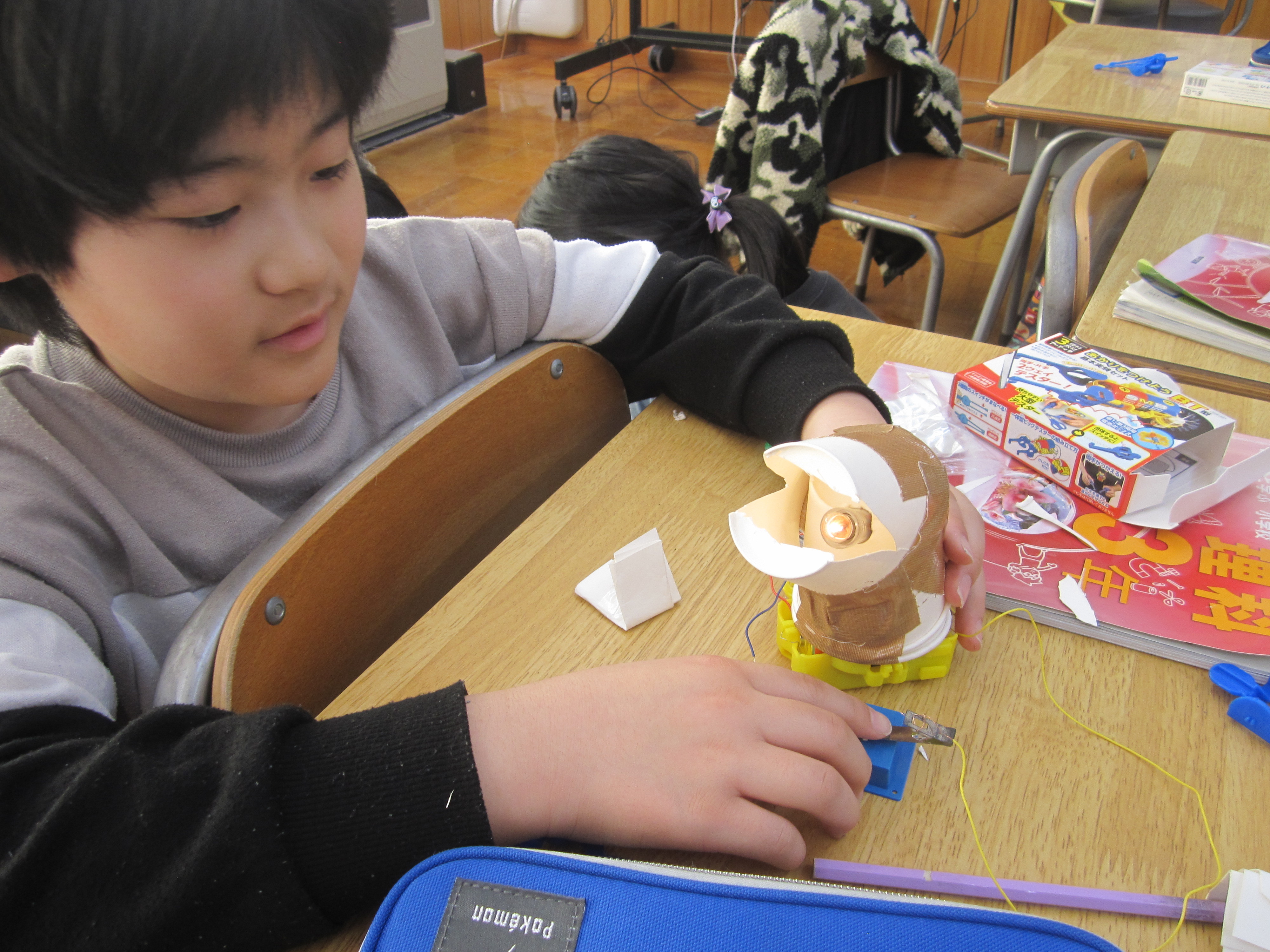 3年生は、学習したことを生かして、明かりの付くおもちゃを作りました。