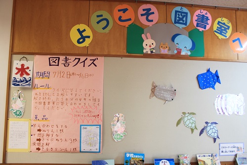 昨日から、図書委員が「図書クイズ」を全校に呼びかけて、特別企画がスタートしています。この企画を通して、図書室利用の増加や夏休みの豊かな読書につなげたいという願いがあります。