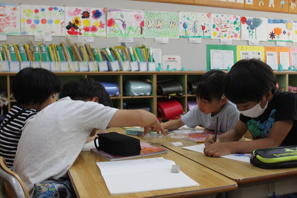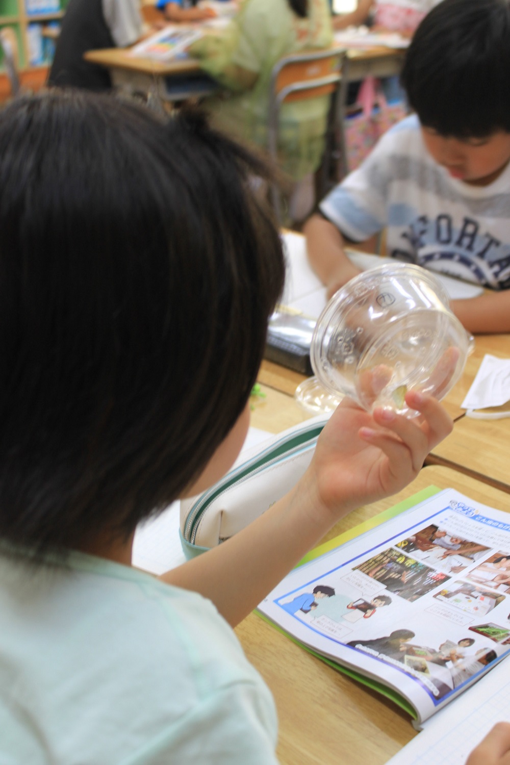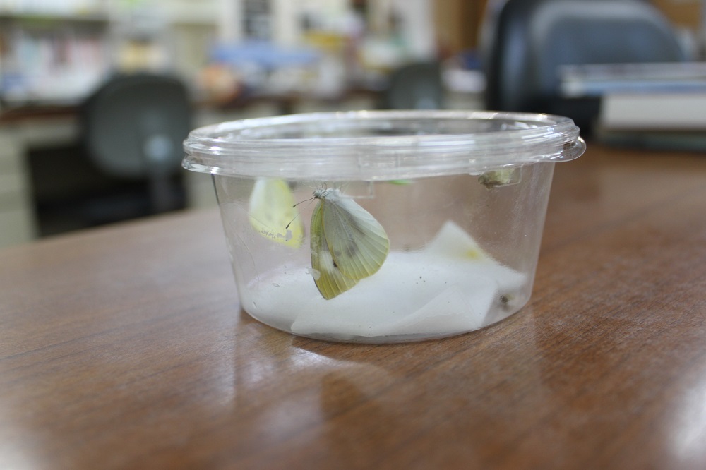 子どもたちも喜んで、成虫になったチョウのからだを観察しました。