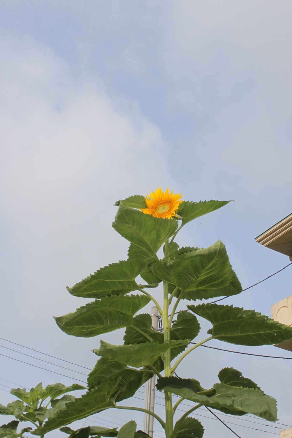 七夕の朝。畑のヒマワリが咲いたことに気付きました。