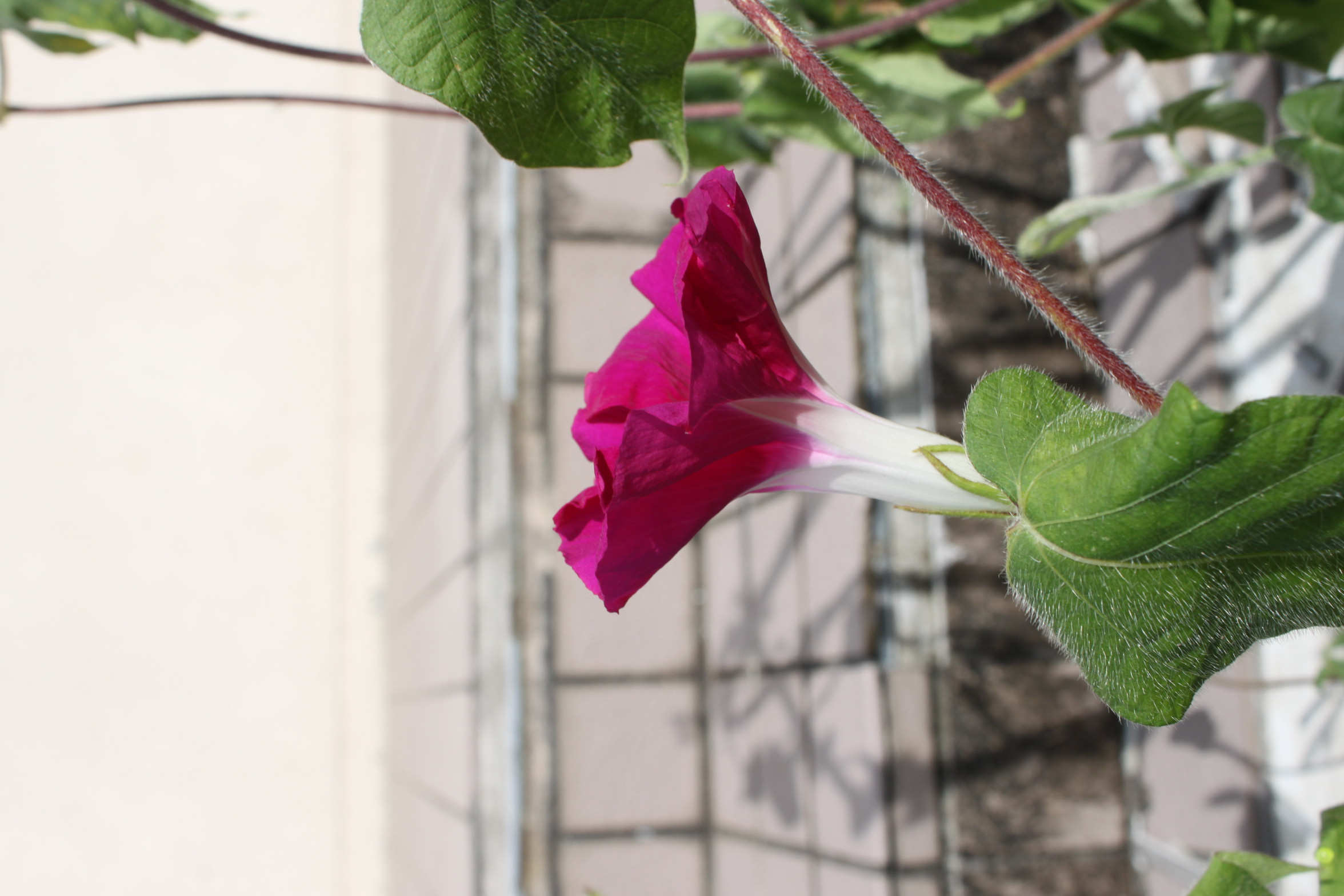 朝、教務室から「アサガオ、さいたよ!」という声が聞こえてきました。種から大事に育ててきただけに、うれしいですね!