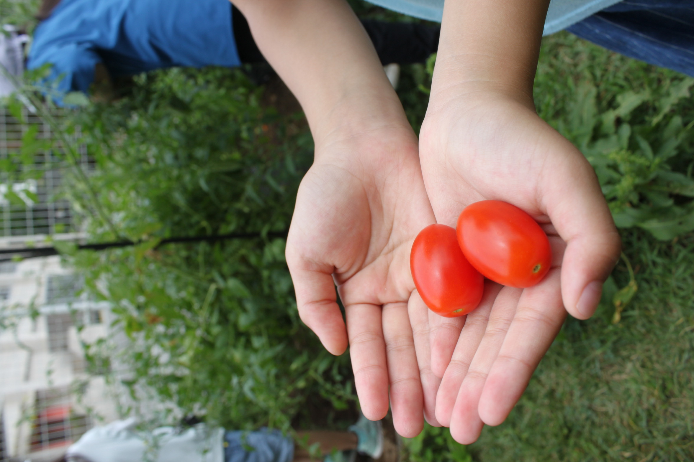 昼休み、「トマト採れたよー!!」と教えに来てくれた2年生。
