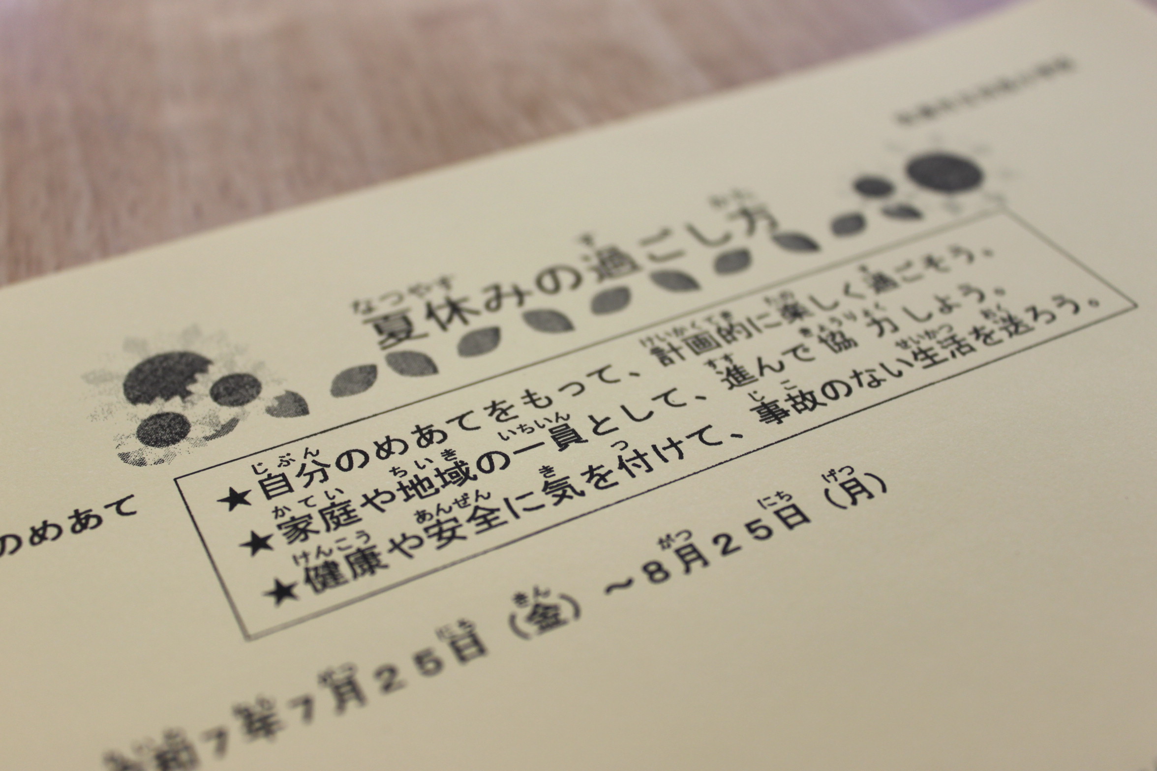 そうやって少し成長した姿を、2学期に見れることを楽しみにしています。