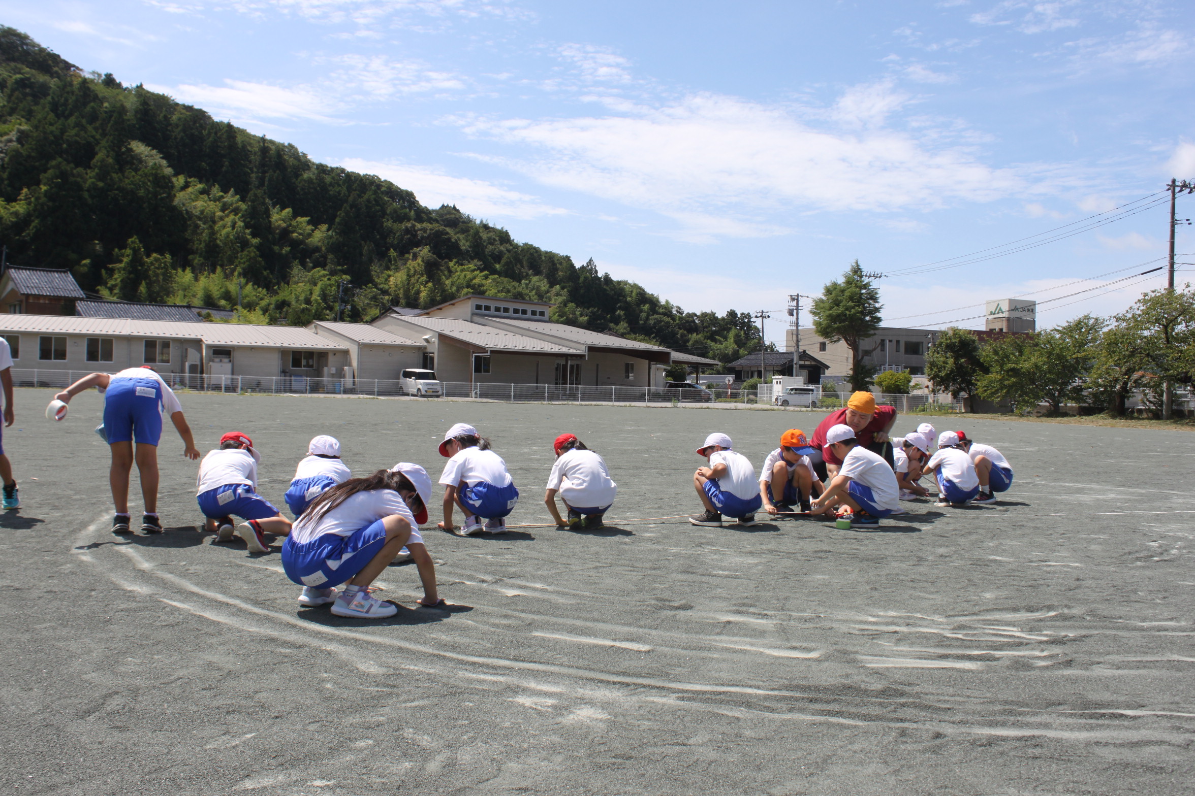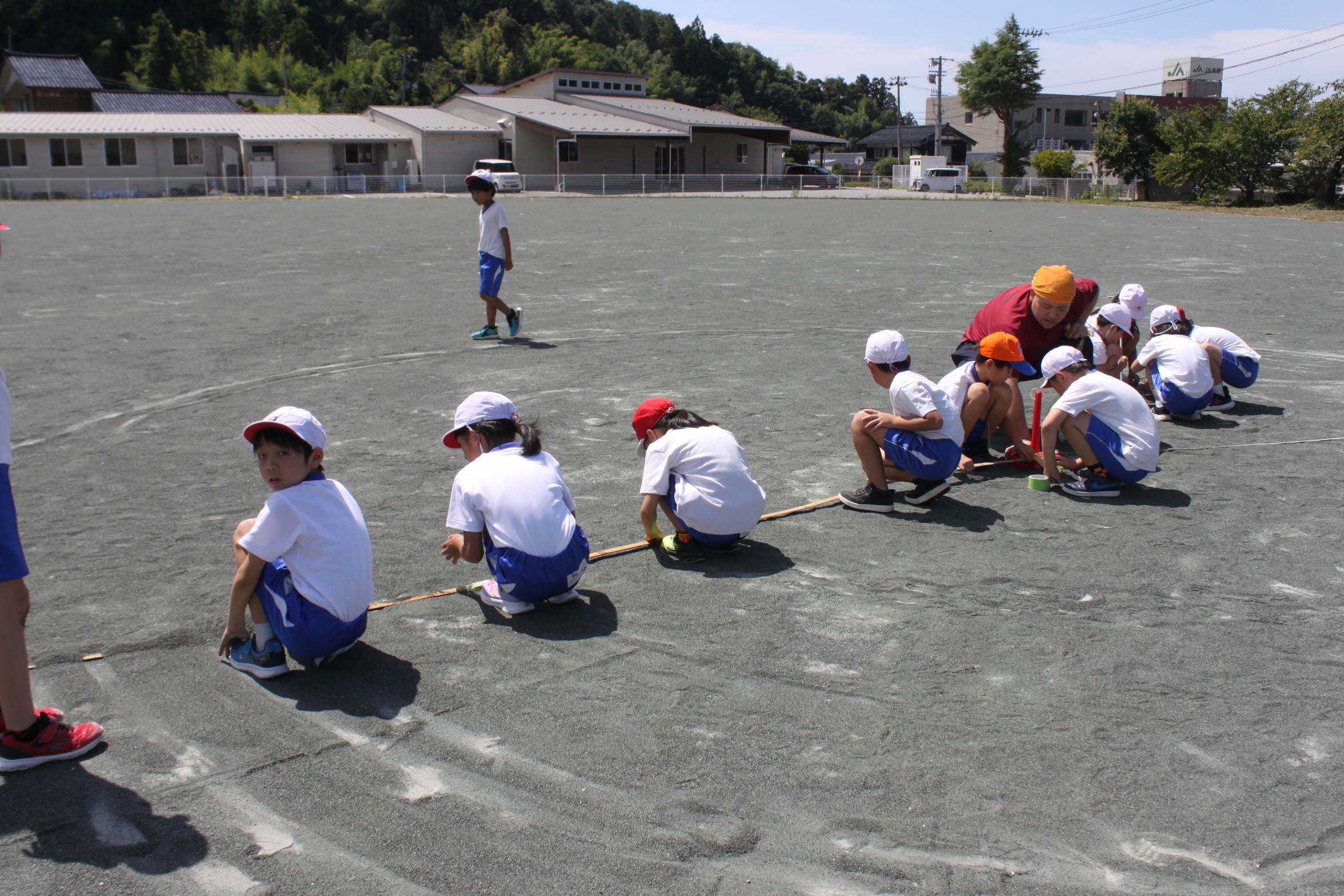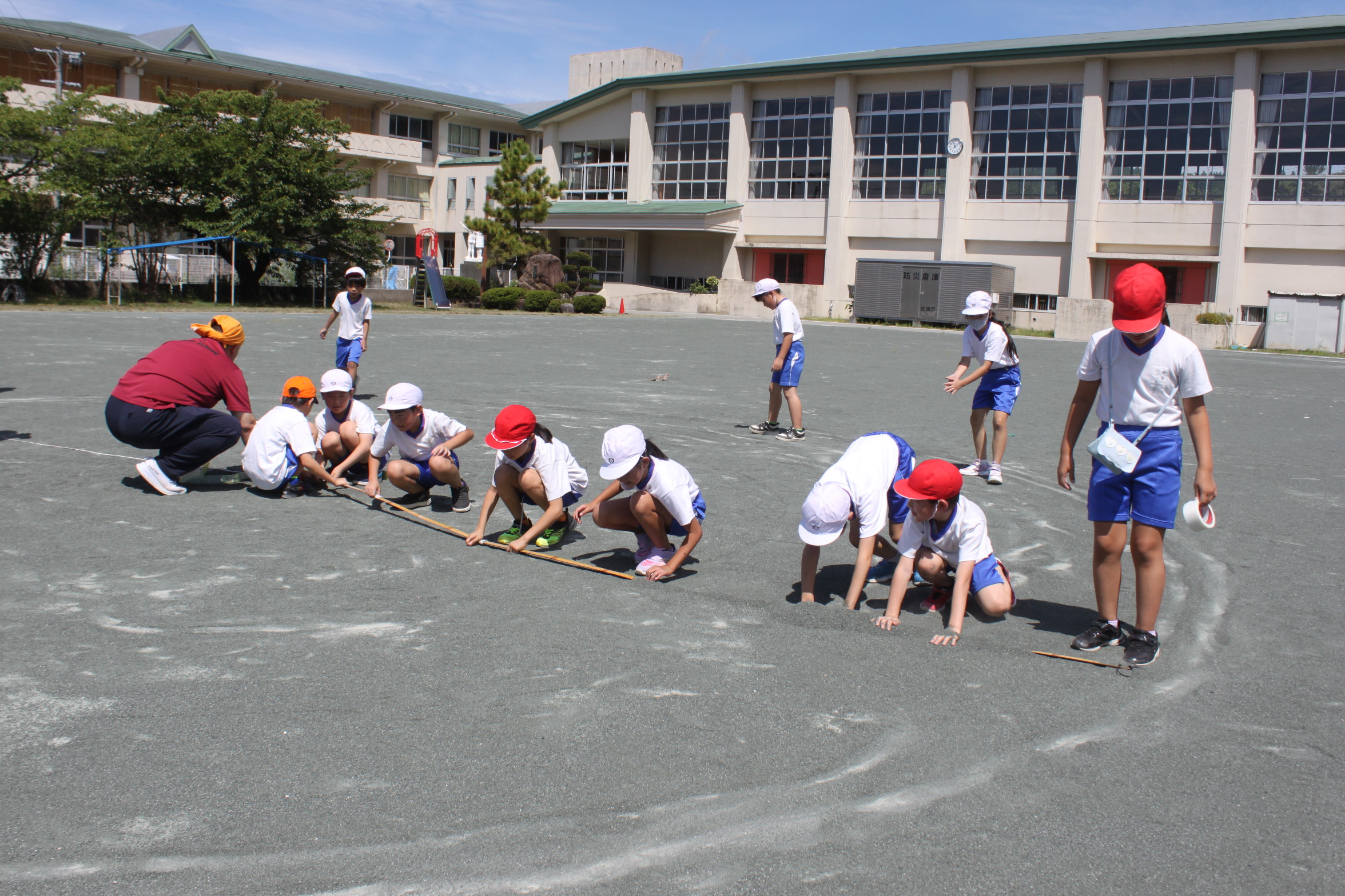 ものさしを5本つないで、直径10Mの大きな円を描くことにチャレンジしていました。