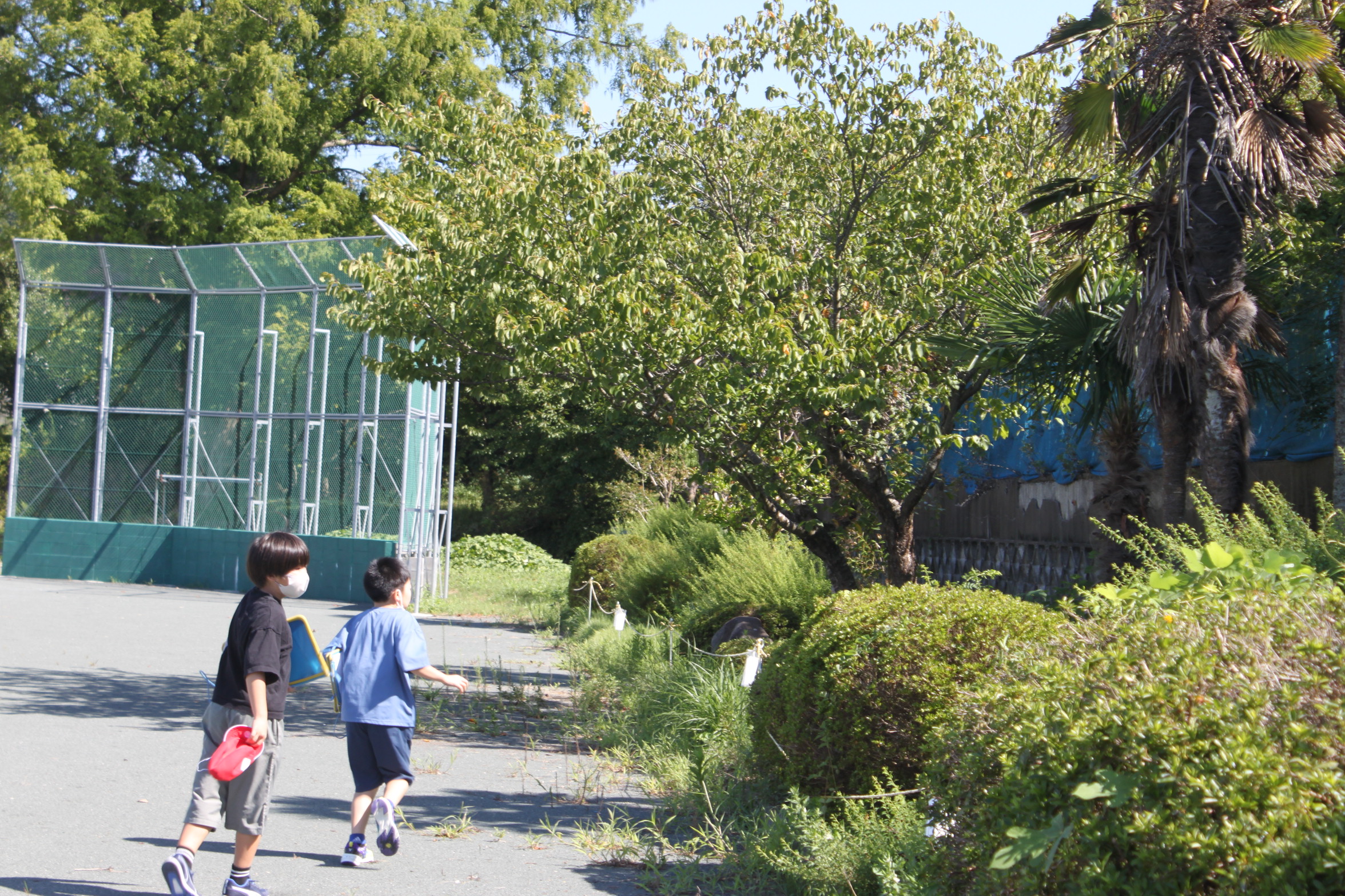 今日の秋探しでは、グラウンド奥のなかよし公園の近くに子どもが集まりました。
