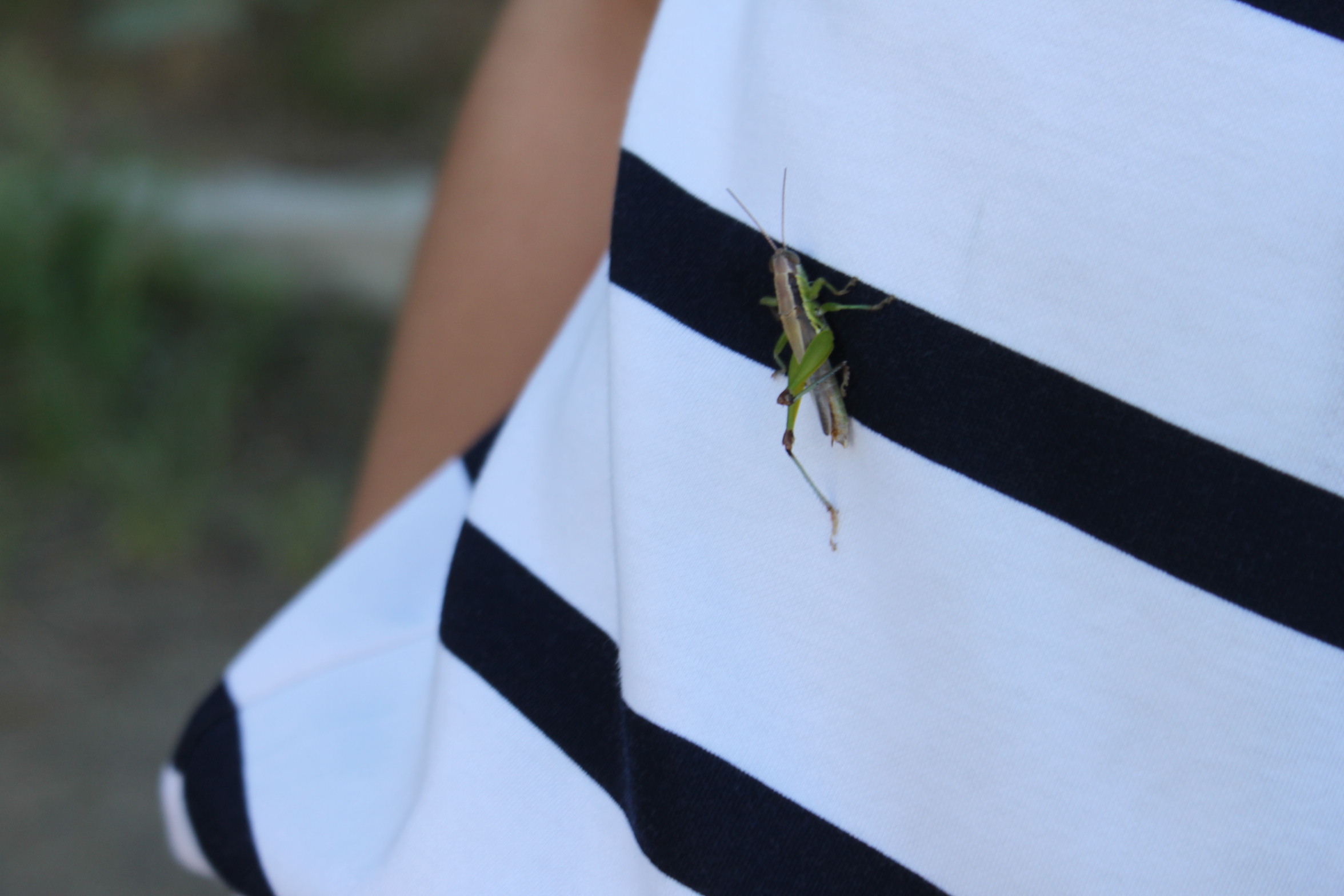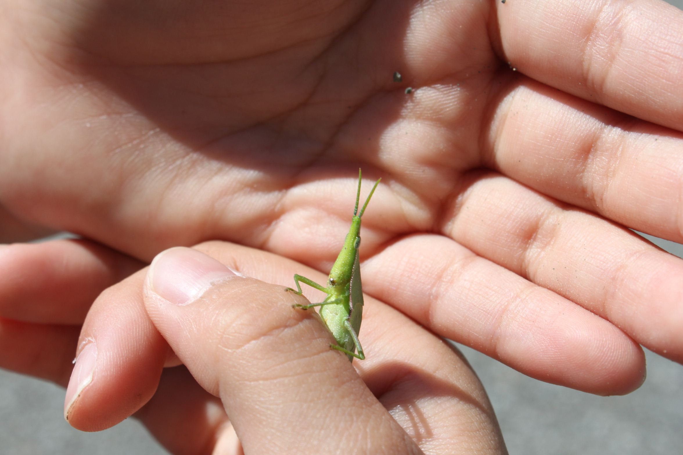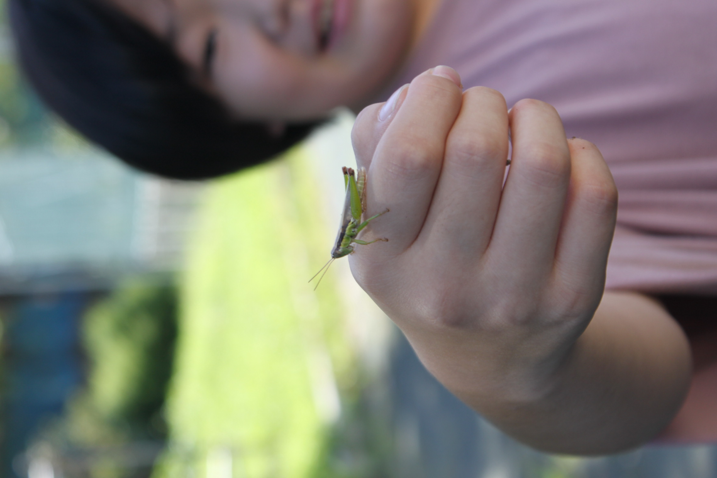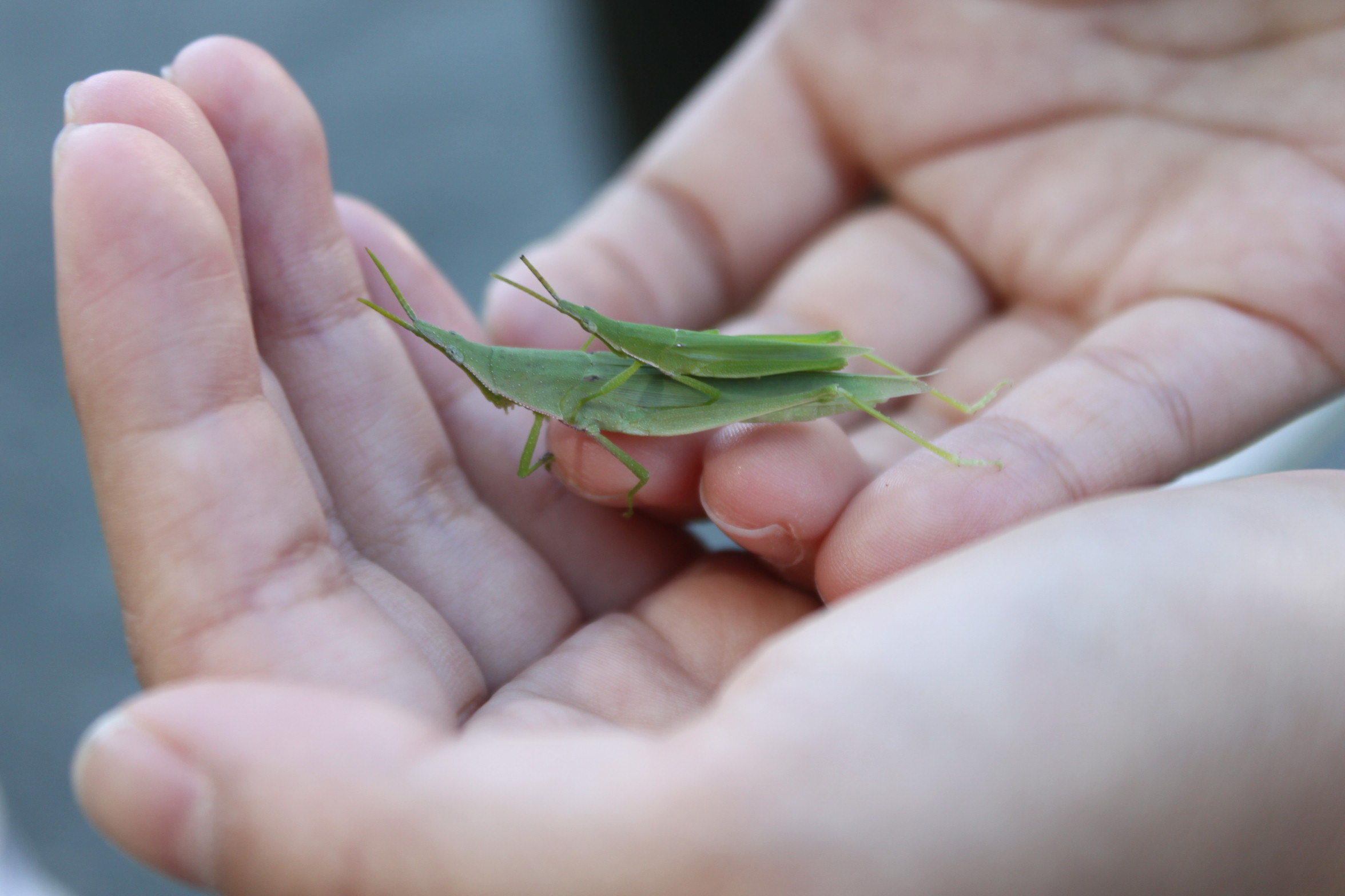 「親バッタが子どものバッタをおんぶしているんだ」と思っていましたが、