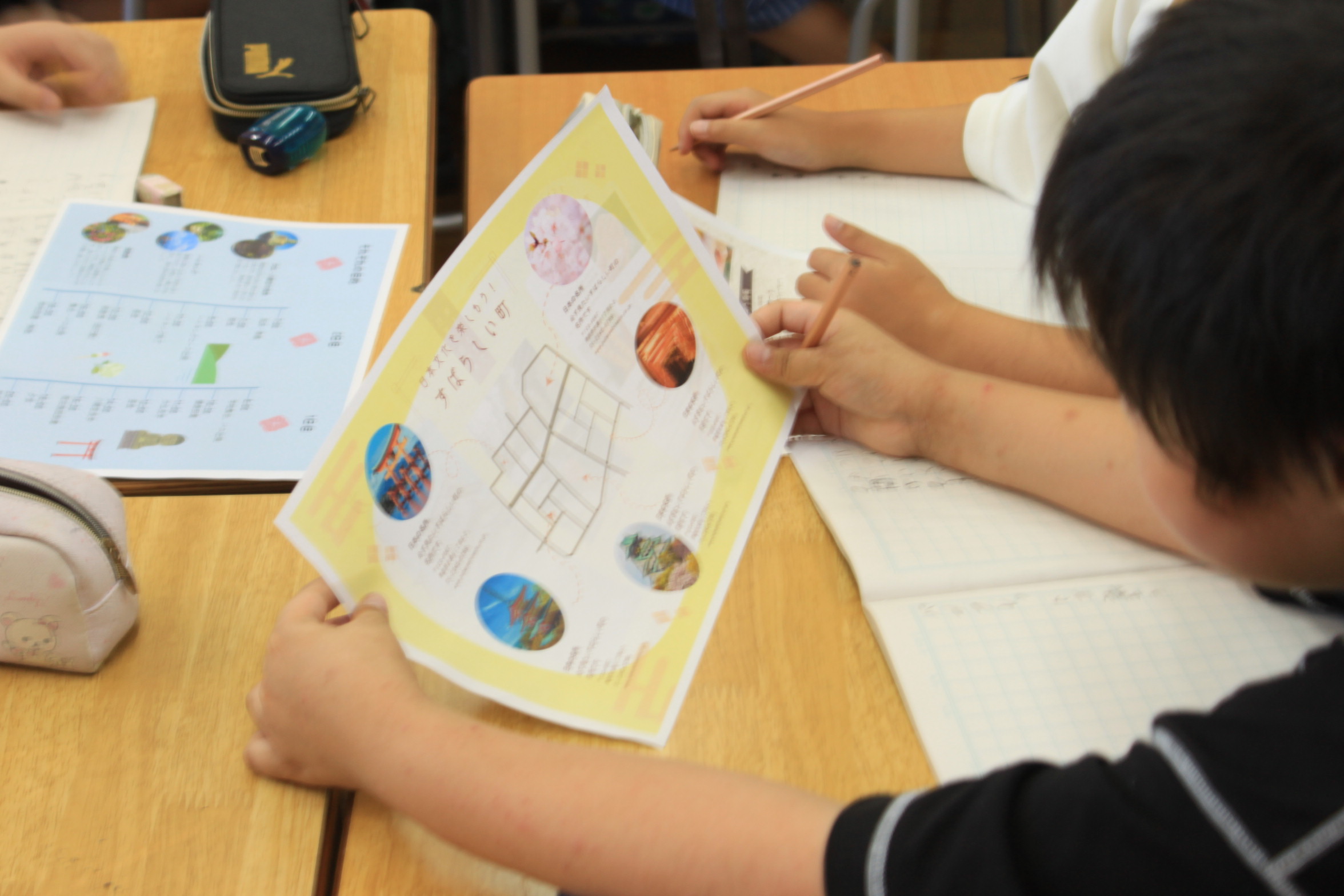 4年生の国語では、実際のパンフレットを少し加工して教材にし、