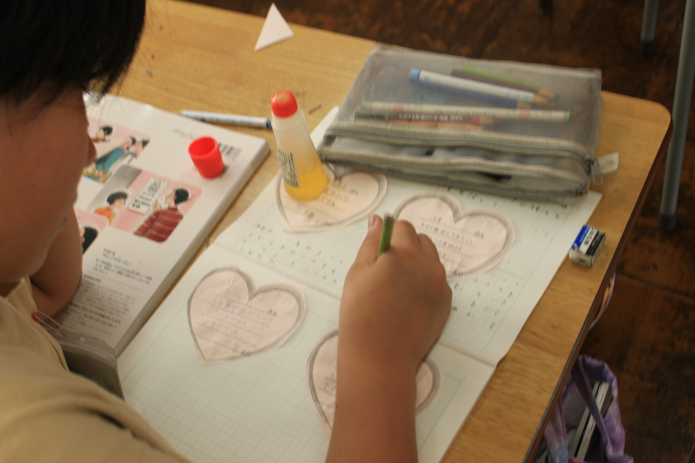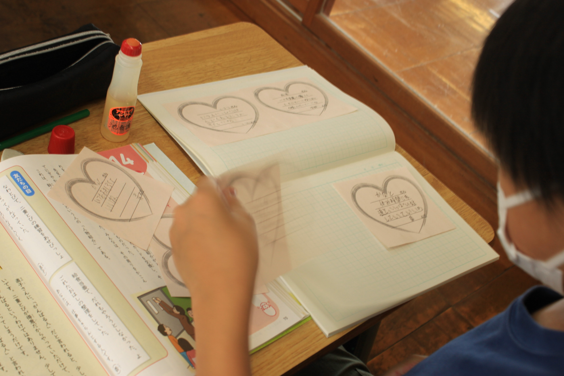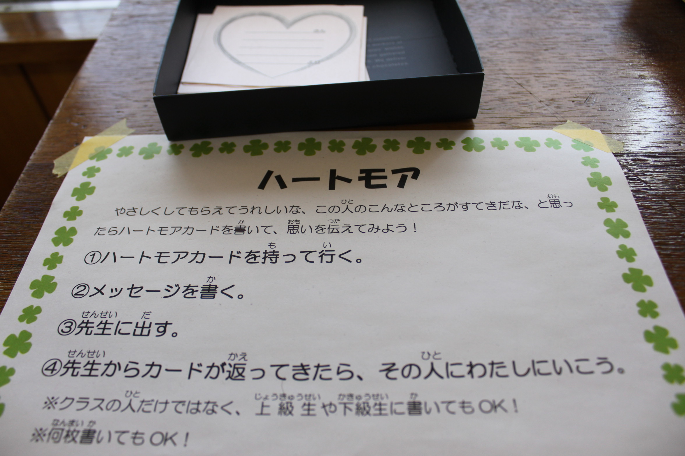 「ハートモアカード」(友達へのメッセージカード)を書いて、友達に渡しました。