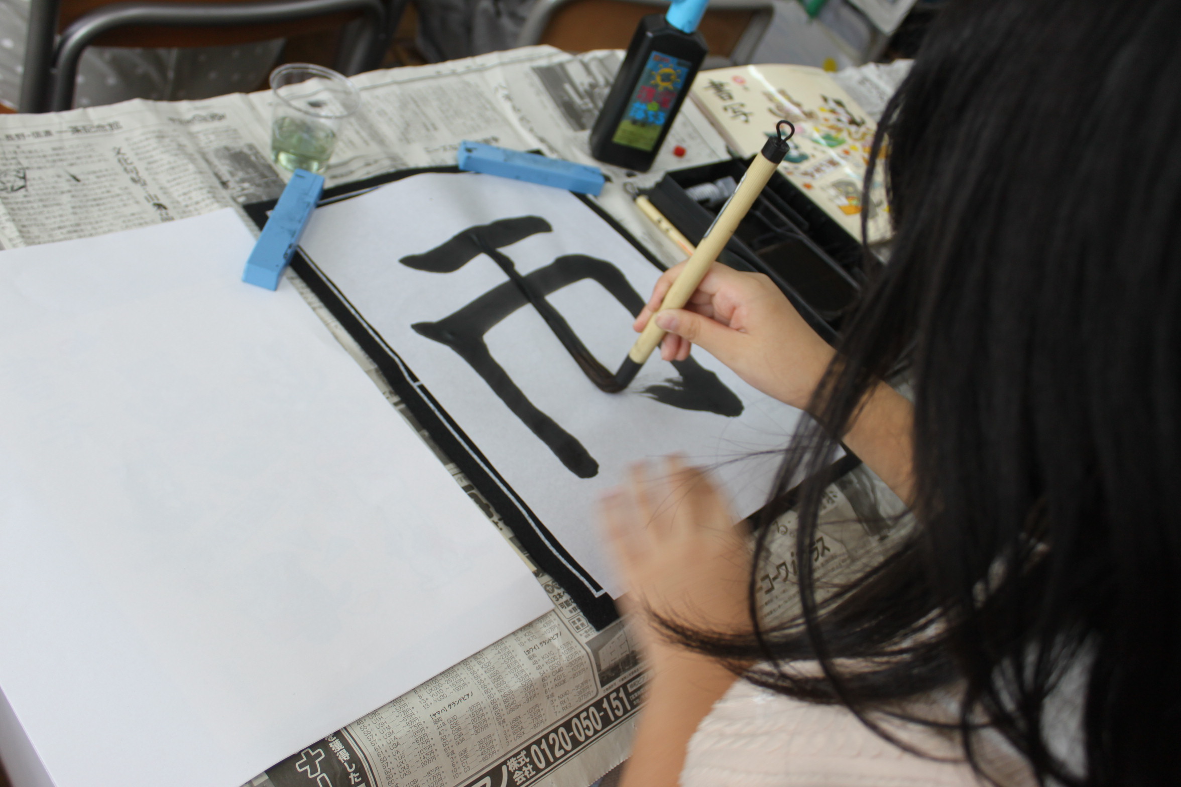 これは、ほぼ墨汁と変わりませんね!ただ、薄く出たり、字の周りが藍色になったりすることもありました。墨をすって心を落ち着かせ、いい字が書けました。昔の人の生活や文化も想起できました。