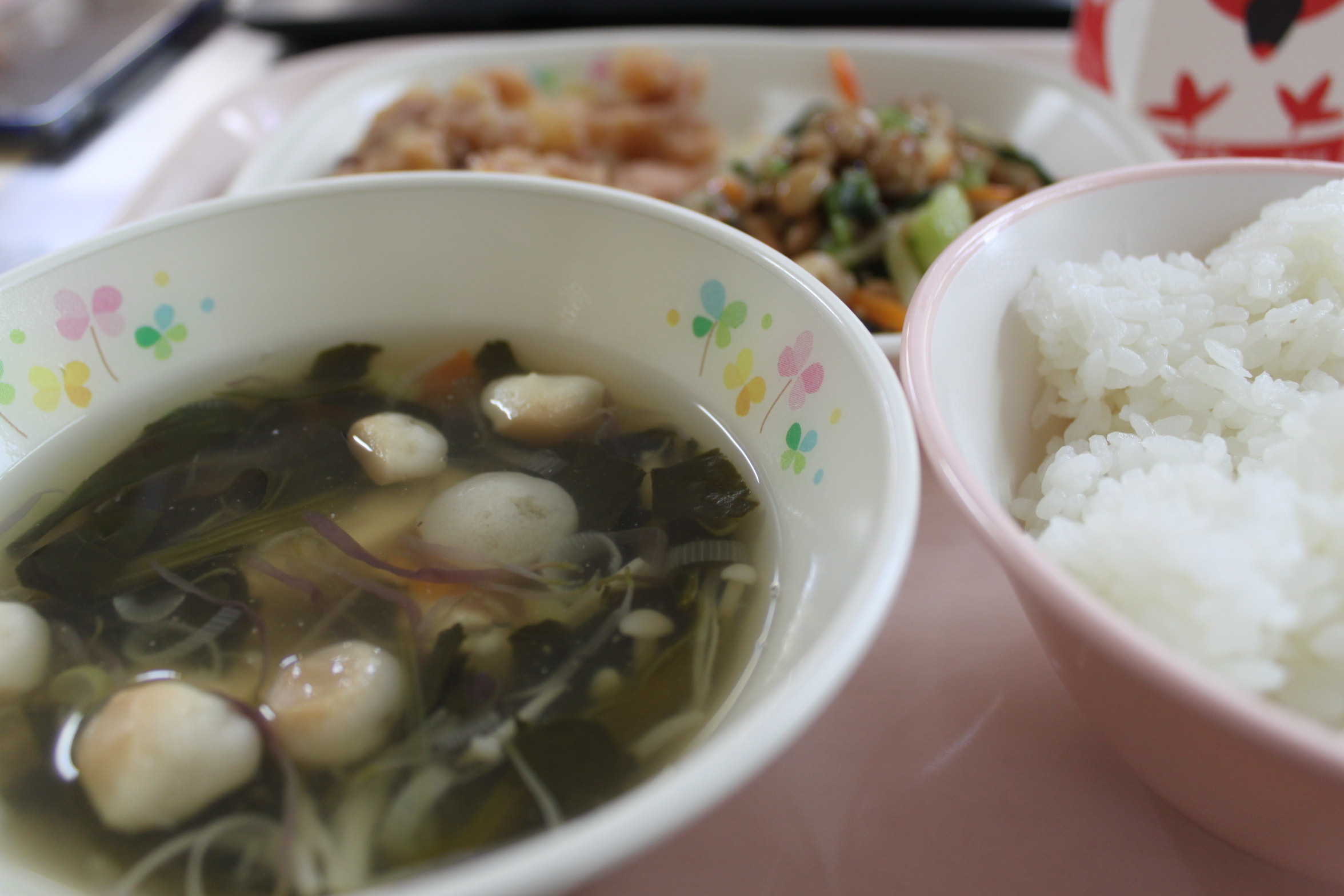今日の給食のお汁は、食用菊の花が入った「菊花汁」でした!