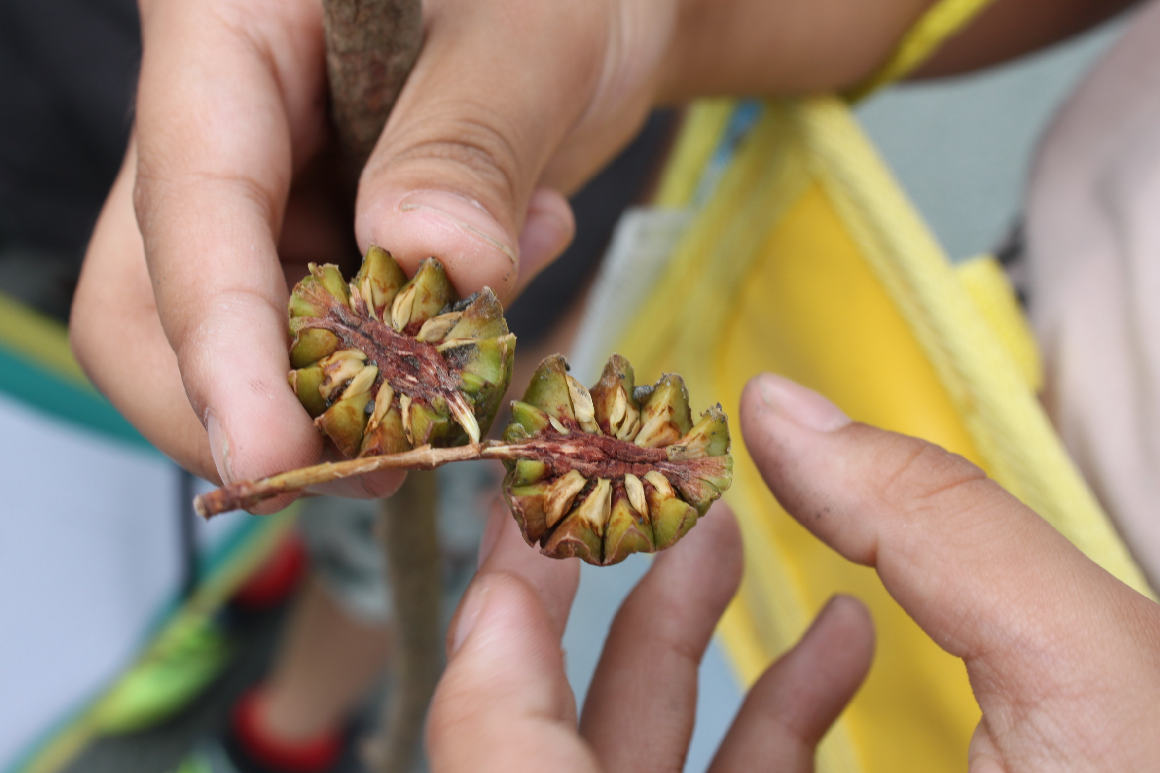 4年生が見付けたメタセコイアの木の実を3年生も見付けました!