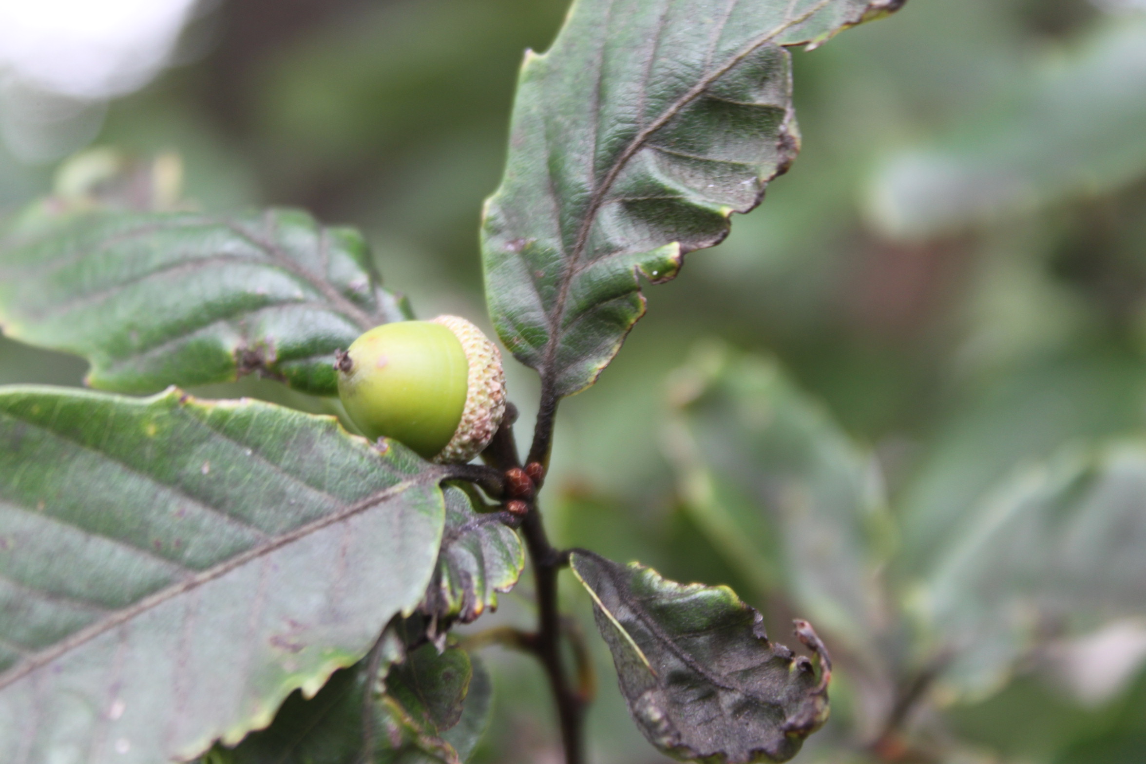 ドングリが成っていますね。「まだ青いね。もう少ししたら色が変わりそう」と子どもは言っていました。