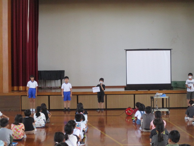 今朝の児童朝会では、5・6年生の健康委員会が、