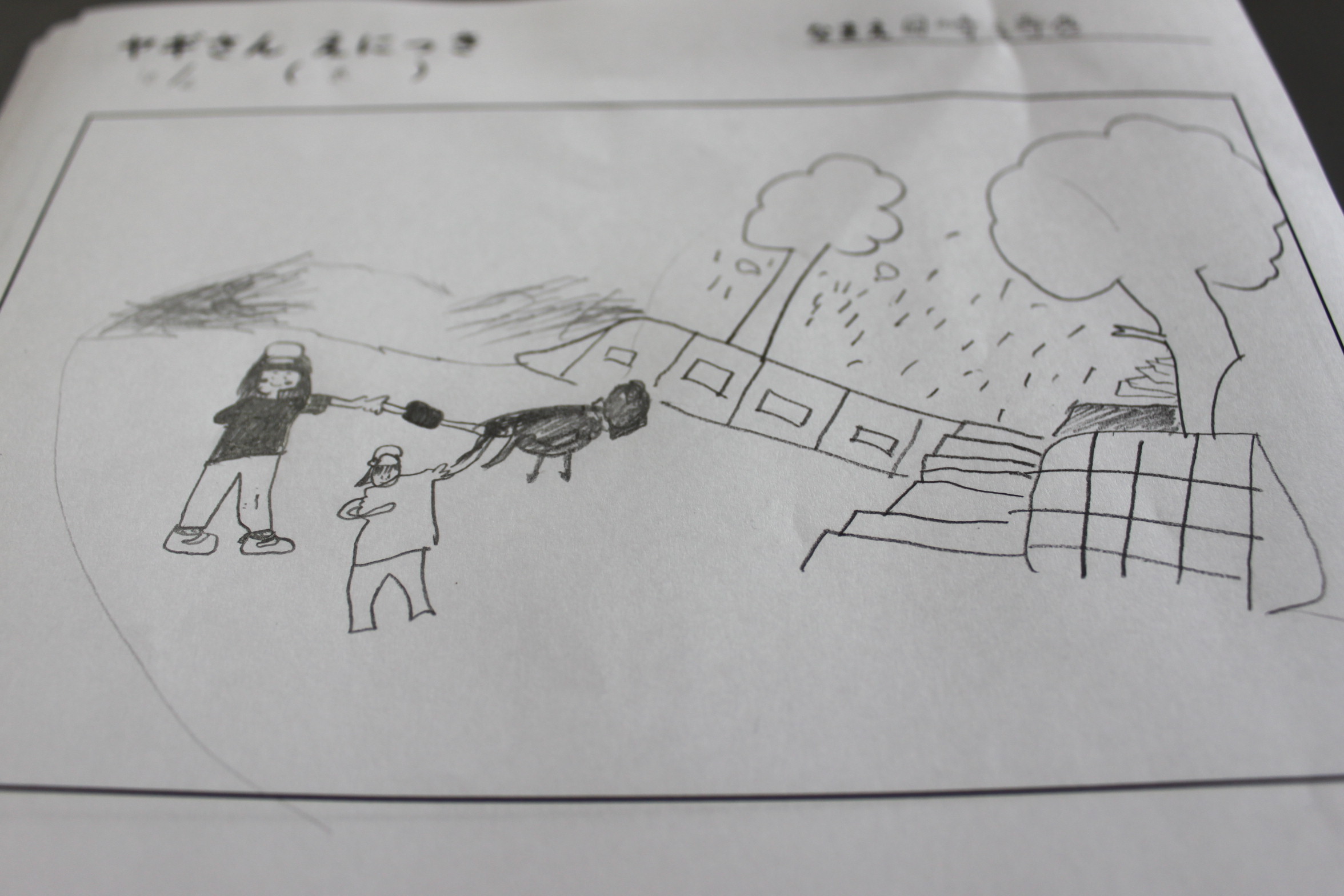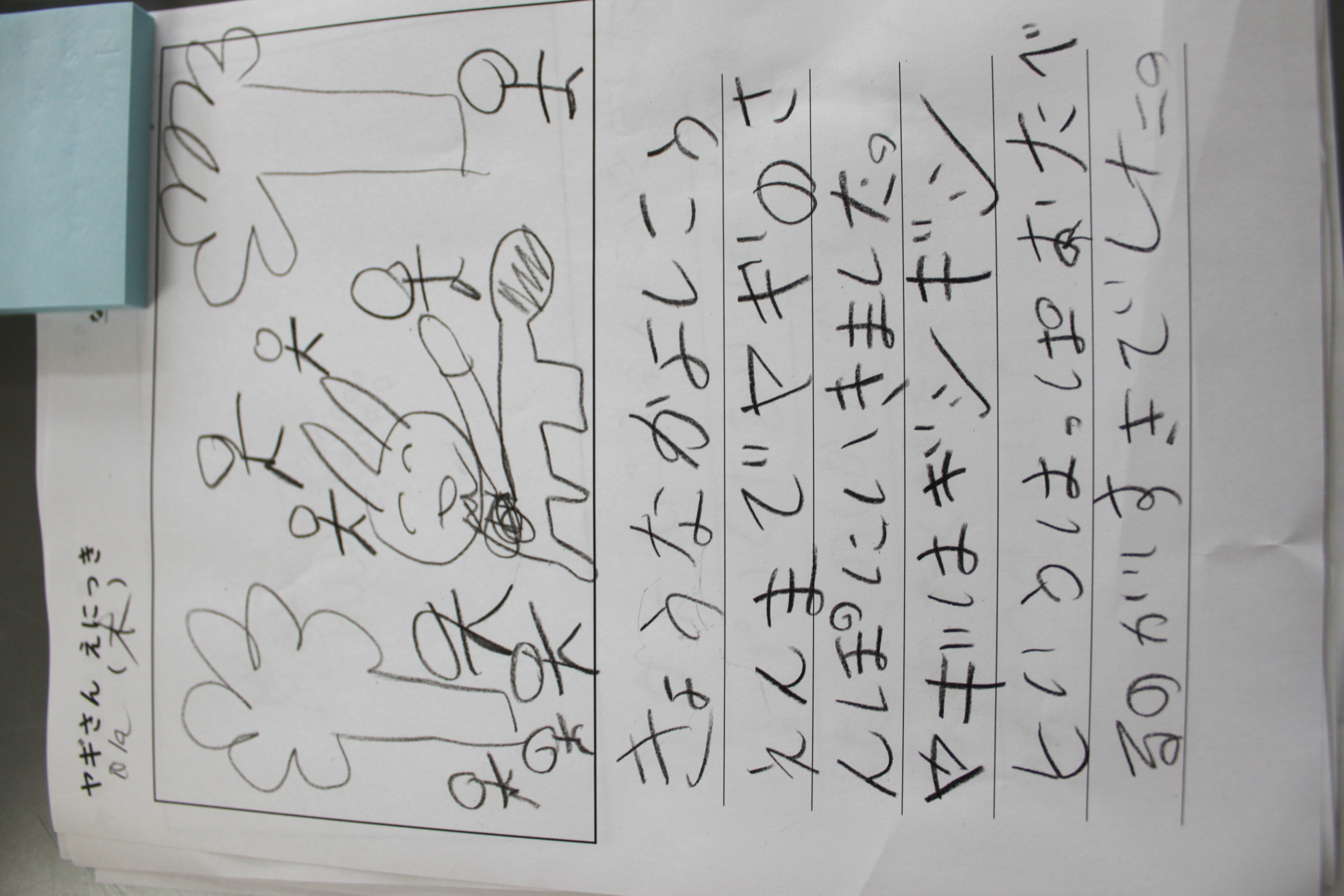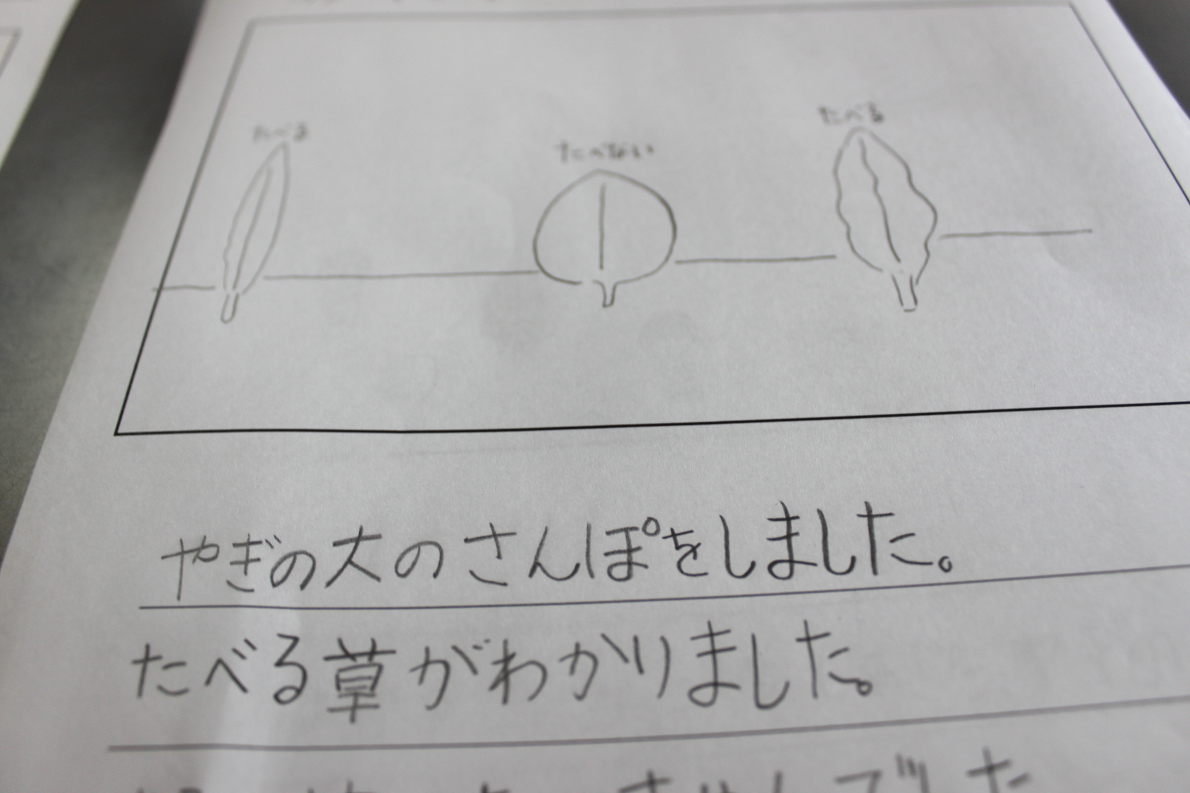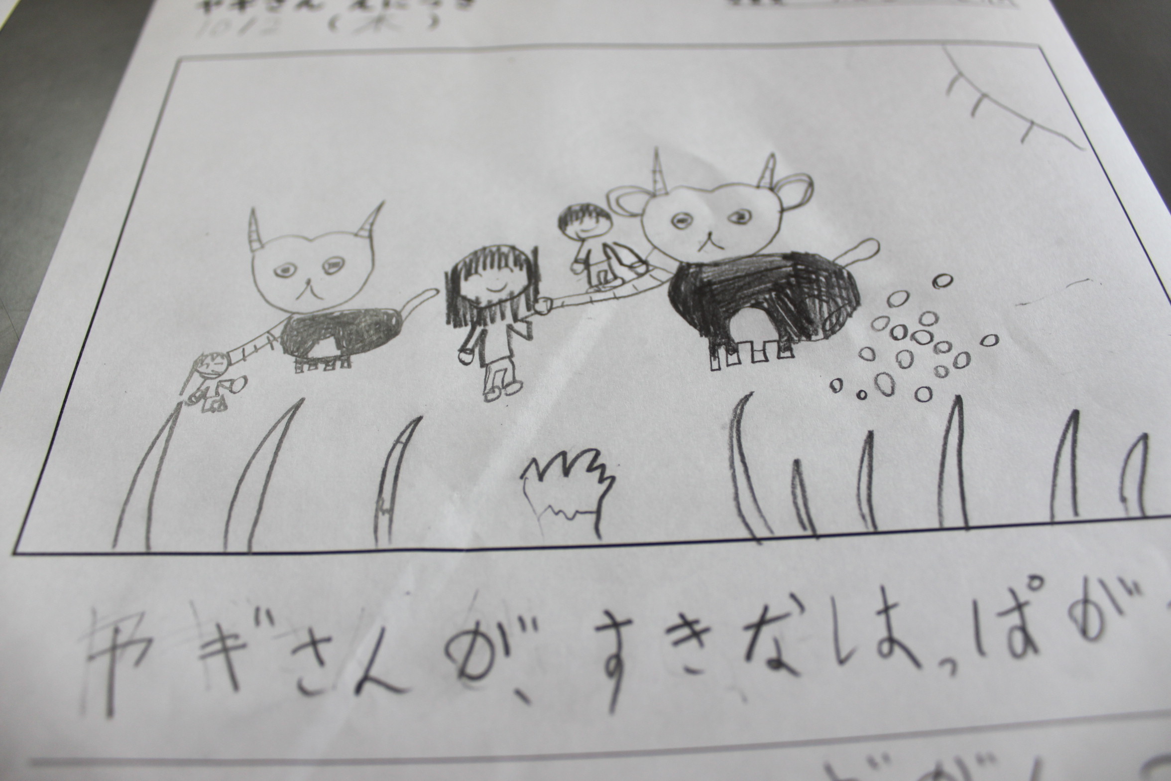 教室に戻り、「ヤギさんえにっき」を書きました。